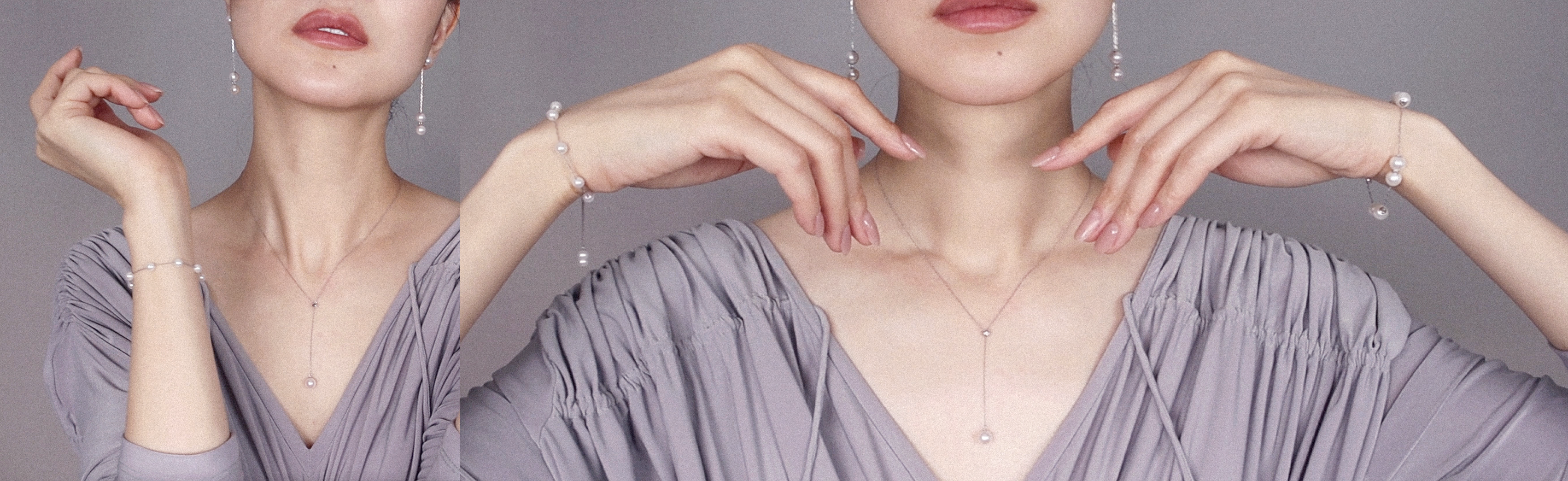 Each freshwater pearl is meticulously selected, paired with exquisite materials of either white or rose gold. The earrings and bracelet harmonize with each other, with pearls evenly dispersed, striking a balance between subtlety and solemnity. The unique feature lies in the adjustable design, offering young individuals a myriad of wearing options, suitable for both daily wear and even wedding ceremonies, enhancing an elegant aesthetic.