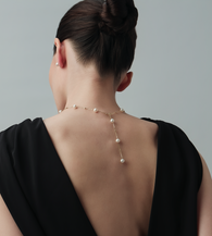 The pearls exhibit a strong luster, are flawless, and have a brilliant shine, featuring a pink overtone that closely resembles the luster of seawater pearls. The necklace has a strong presence. The 18K gold chain is adorned with small gold beads that can move freely along the chain, while the beads on the 14K gold chain are fixed in place, creating a cleaner and more refined visual effect.