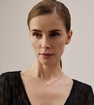Crafted with meticulous attention to detail, the “Starry Moonbeam” is more than just a necklace – it's a statement of refined taste and sophistication. The innovative design allows for the movement and fixation of the small golden beads, offering versatility in styling. Whether worn to elevate a polished daytime look or to add enchantment to an evening ensemble, this necklace is destined to become a cherished staple in your jewelry collection, offering endless possibilities for expression and elegance.
