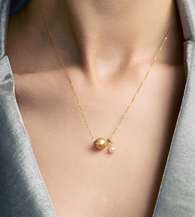 High-quality Golden South Sea Pearls have a strong luster, and the Akoya Pearl has a unique shape that is naturally agile. The accessory material is 18K Solid Gold, and the necklace design is simple, hiding natural charm.