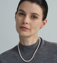 These elegant pearl ear clips feature AA-grade Aurora pearls, each measuring 9–10 mm. Accessory materials are sterling silver, and the silver clasp ensures a comfortable and secure fit without the need for pierced ears. The design is minimalist and refined, combining modern simplicity with classic elegance.