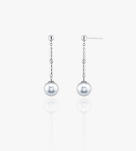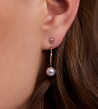 These earrings features silver blue akoya pearls and 18K white gold crafted with guilloché detailing. The selected silver blue Akoya pearls exhibit a rare and cool blue-gray hue, striking a perfect balance between subtlety and elegance, exuding a serene beauty. Paired with finely crafted 18K white gold, the combination enhances the uniqueness and refinement of the design. The white gold components are meticulously crafted for comfortable wear, making this a truly special piece.