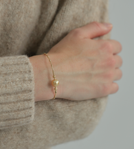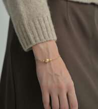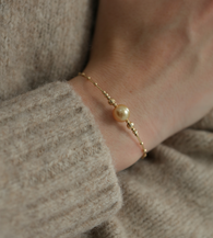 This pearl bracelet features a combination of one AA 9–10mm Golden South Sea pearl and two AA 3–4mm Akoya pearls, with accessory materials in 18K solid gold. Each pearl is carefully hand-selected for its radiant luster and accented with small gold beads, perfectly highlighting the natural beauty and elegant charm of the pearls.