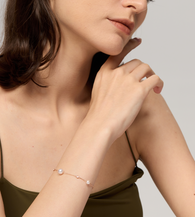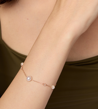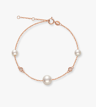 This is an exquisite bracelet with a gentle and versatile rose gold color palette. The delicate diamond accents highlight its value and elegance, while the addition of two pearls adds depth and sophistication. The centerpiece features a 7-7.5mm pearl drop, providing a striking focal point and enhancing the overall richness of the design. This bracelet seamlessly combines warmth and refinement, making it a perfect accessory for any occasion.