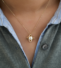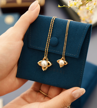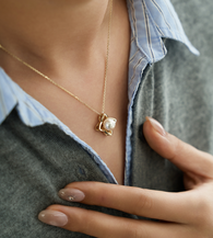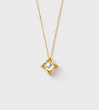 The Clairé Necklace is shaped around a soft focal presence, framed by a sculptural form with gentle symmetry. Suspended from a fine chain, the design draws the eye naturally toward its center, allowing proportion and light to define its character.