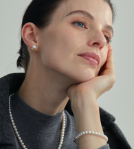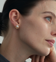 These pearl earrings feature 8–9mm AA-grade Aurora Pearls, set with 18K solid gold accessories. The angular design and clean, sleek lines of the gold create a striking contrast with the pearls’ roundness, enhancing their colorful iridescence that shines like tiny lights. With a minimalist yet refined design, these earrings embody both elegance and modern sophistication.