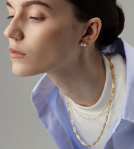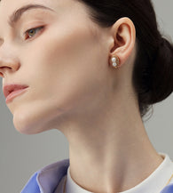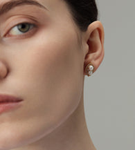 Crafted in Gold Vermeil, these earrings feature two 4.5–5mm Aurora AAA pearls set within an oval pavé halo. The paired pearls create a harmonious symmetry, while the surrounding sparkle adds refined brilliance.