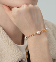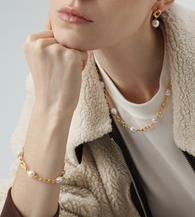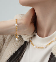A sequence of 7-9 mm Aurora Baroque Pearls is paired with gold vermeil links, allowing the natural silhouettes and soft glow of each pearl to be highlighted. The organic contours and structured chain create a refined balance that complements the Lucienne Necklace as a matching set.