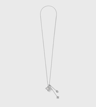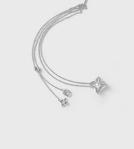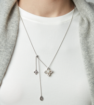 Designed with an adjustable sliding clasp, the necklace moves fluidly between a classic length, an elongated Y-shape, and a graceful sweater chain. The tail chain is finished with two thoughtful details: a miniature quatrefoil set with a zircon on one side, and an openwork Gingiberi signature tag on the other, completing the design with quiet balance and refined precision.