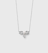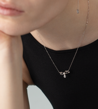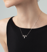 This charming Necklace features a luminous AAA-grade 3–3.5mm Akoya pearl at its heart, accented by a brilliant pear-cut and round lab-grown diamond cluster totaling 0.4ct. Crafted in solid 14K white gold, the delicate ribbon-inspired silhouette creates a poetic blend of feminine grace and modern sparkle.
