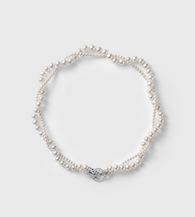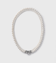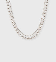 This double-layered pearl necklace features two pearl sizes for versatile styling options. Wear it as a single strand, layered, twisted into a braid, or mix and match for a long chain effect. The bold clasp and loop add a stylish touch, inviting you to explore even more unique ways to wear it. Unlock countless looks with this adaptable piece. Natural pearls may vary slightly in size due to their organic nature, leading to minor differences in necklace length.