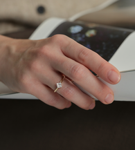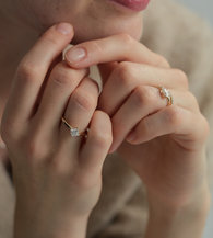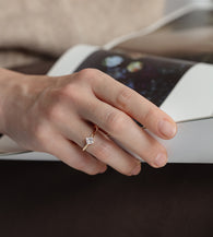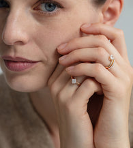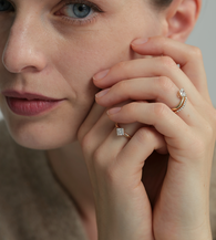 The design highlights the geometric precision of the square cut, with a clean and seamless connection between the band and the center stone. Free of unnecessary embellishments, it presents a minimalist and luxurious visual effect. Worn alone, it serves as a statement piece for everyday elegance; paired with a slim band, it creates a chic layered look.