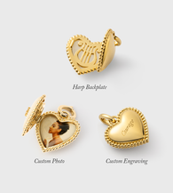 When opened, one side of the heart reveals a harp-shaped backplate, while the other side can hold a photo. We also offer custom engraving and custom photo services to make this piece uniquely meaningful. If you would like engraving or a custom photo, please leave a note on your order or contact our customer service. Photo customization takes 5 workdays and text engraving takes 3 workdays.Please note: engraved or photo-customized products are not eligible for return or exchange.