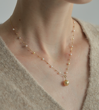 This necklace offers two wearing options: wear it with the gold pearl for a striking look, or wear the chain alone for a simple, elegant style. It can be easily layered with other pearl necklaces or gold jewelry to create a richer, multidimensional look. Perfect for everyday office wear, evening parties, and other formal occasions, it also makes a refined and thoughtful gift.