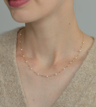 This pearl necklace features an AA 9–12mm Golden South Sea Pearl pendant (available in 9–10mm, 10–11mm, and 11–12mm) paired with 3–3.5mm Akoya pearls and small gold beads arranged alternately. Each pearl is carefully selected for exceptional quality. The 44cm chain is crafted from 18K solid gold, ensuring lasting shine and comfortable wear. The design combines luxury with dynamic elegance—the gold pearl pendant adds warmth, while the alternating Akoya pearls create contrast and a playful, layered effect.