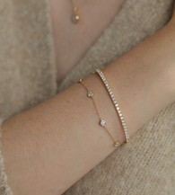 With a minimalist yet refined design, this bracelet can be worn alone for understated elegance or stacked with other pieces to create a personalized, layered style. Its sophisticated aesthetic makes it perfect for everyday wear, while also elevating outfits for parties, weddings, or formal occasions. The evenly spaced diamonds add symmetry and grace, ensuring timeless appeal in any setting, and they also make a perfect gift.