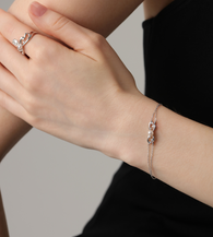 The adjustable slider mechanism, finished with a petite dangling pearl, ensures a perfect and secure fit for any wrist size. A poetic and playful addition to your daily jewelry collection, perfect for stacking or wearing as a charming standalone piece.