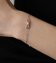 This delicate Bracelet features a luminous AAA-grade Akoya pearl centerpiece, paired with a shimmering lab-grown diamond totaling 0.08ct. Crafted in solid 14K white gold, the elegant ribbon-inspired design is complemented by a sophisticated double-chain structure that gracefully wraps around the wrist.