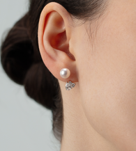 These 2-in-1 Front-Back Earrings feature luminous AAA-grade 7–7.5mm Akoya pearls, elegantly paired with a shimmering cluster of pear and round-cut lab-grown diamonds totaling 0.84ct. Crafted in solid 14K white gold, the brilliant diamond droplets sit gracefully behind the earlobe, creating a multi-dimensional, "floating" jewelry effect.