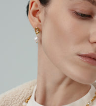 Crafted in Gold Vermeil, these sculptural earrings pair fluid organic metal forms with luminous 7–9mm Aurora Baroque Pearls. Each pearl carries its own natural silhouette, creating a unique interplay of texture and light.