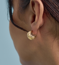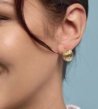 Lightweight and comfortable to wear, these earrings feature a rounded, full design with natural textures that gleam and captivate. Their radiant shine effortlessly enhances your look, making them a truly eye-catching piece.