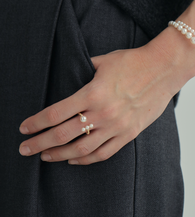 The open design gives the ring a sense of balance and versatile styling, while the soft glow of the pearls contrasts beautifully with the polished metal, creating a modern yet timeless look that is both simple and refined. It pairs effortlessly with office attire, evening dresses, or casual chic outfits, whether for everyday wear or special occasions.