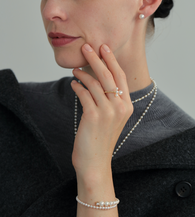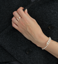 This pearl ring features AAA-grade Akoya pearls, with one larger pearl (6.5–7mm) and three smaller pearls (4–4.5mm). The accessory materials are 18K solid gold, providing both refinement and lasting durability.