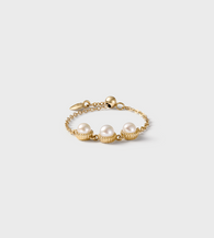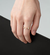 Set in 14K Solid Yellow Gold, this delicate ring features three AA-grade Aurora pearls (3–3.5mm), each softly framed by a beaded gold halo. The design highlights the gentle glow of the pearls while maintaining a refined, minimalist silhouette.