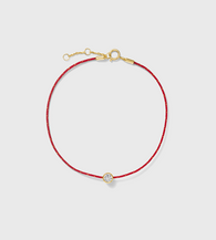 This minimalist bracelet centers a brilliant 0.2ct lab-grown diamond, bezel-set in solid 14K yellow gold for a clean, modern glow. The diamond floats along a slender red cord - symbolic, refined, and unexpectedly elegant. Lightweight and effortless, it adds a subtle spark whether worn alone or layered with your everyday pieces.