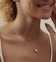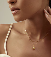 Artfully crafted, the double chain is made of pure 18K gold. The fine chain reveals intricate workmanship, creating a layered effect in a single wear, while the thicker chain, polished smoothly, shimmers with every link. Uniquely designed, this necklace seamlessly blends timeless elegance and contemporary fashion. Its versatility shines, elevating both everyday attire and evening gowns, enhancing their essence.