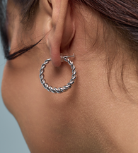 These earrings feature an intricate woven hoop design, with a unique twisted rope shape that beautifully blends classic elegance with modern flair. This is a chic and fashionable piece that showcases distinctive personality.