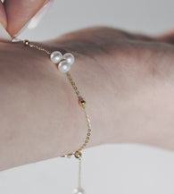 This bracelet features a beautiful combination of pearls and gold beads, creating a layered effect and unique charm. Its simple yet exquisite design makes it a versatile accessory that effortlessly complements any outfit, adding a touch of elegance and sophistication to your daily look.