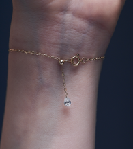 Strung on a delicate 14K solid gold chain, the bracelet feels featherlight and barely there, allowing the pearls to appear as if floating against the skin. As you move, the diamond dances subtly, enhancing the sense of fluidity and quiet elegance.