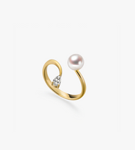 This pearl ring features a 6-6.5mm AAA-grade Akoya pearl and a 0.17-carat pear-shaped lab-grown diamond, forming a delicate dialogue between brilliance and softness, like morning dew gliding over the sea. The contrast of sparkle and sheen brings an elegant, fluid harmony to your hand.