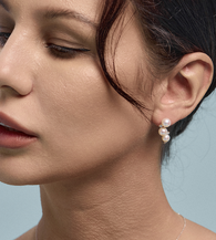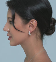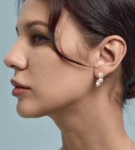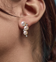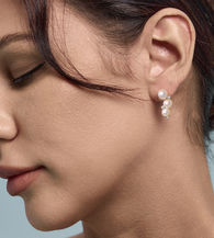 The sparkling diamonds and gentle pearls are beautifully interwoven in an offset pattern, creating a shimmering scene reminiscent of light reflecting off water and the subtle sway of flowers. The exquisite diamond accents beside the pearls bring a sense of fluidity and movement to these earrings, making them a piece that is both minimalist and refined.